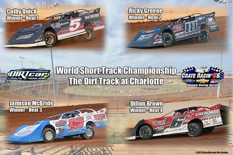 CONCORD, N.C. (Oct. 28) — Drivers Colby Quick, Ricky Greene, Jamison McBride and Dillon Brown registered heat race victories Friday night at The Dirt Track at Charlotte, and the field was set for the 604 Fox Factory Pro Late Model portion of the DIRTcar-sanctioned World Short Track Championship at the 4/10-mile oval.