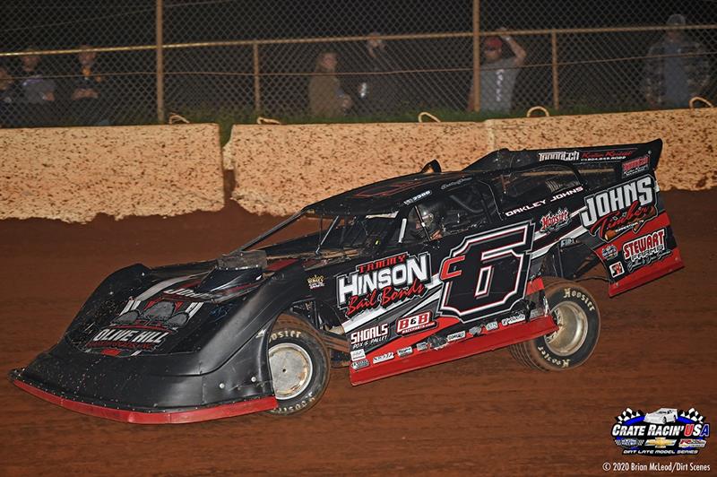 PHOTO CUTLINE: Oakley Johns of Hohenwald, TN in the #C6 Shoals Box and Pallet Special has a chance to close in on point leader and defending National Champion Shannon Lee of Lumberton, MS in the Newsome Raceway Parts Crate Racin’ USA Weekly Racing Series Late Model National point standings with Make-Up Races and Double Features in Week 20 competition of the 22-week season. Points can be earned for Week 5, Week 19, and Week 20 this weekend. On the other side of the coin, Lee could clinch his second straight $10,000 title with a pair of 50-wins this weekend. (Crate Racin’ USA Media File Photo by Brian McLeod)